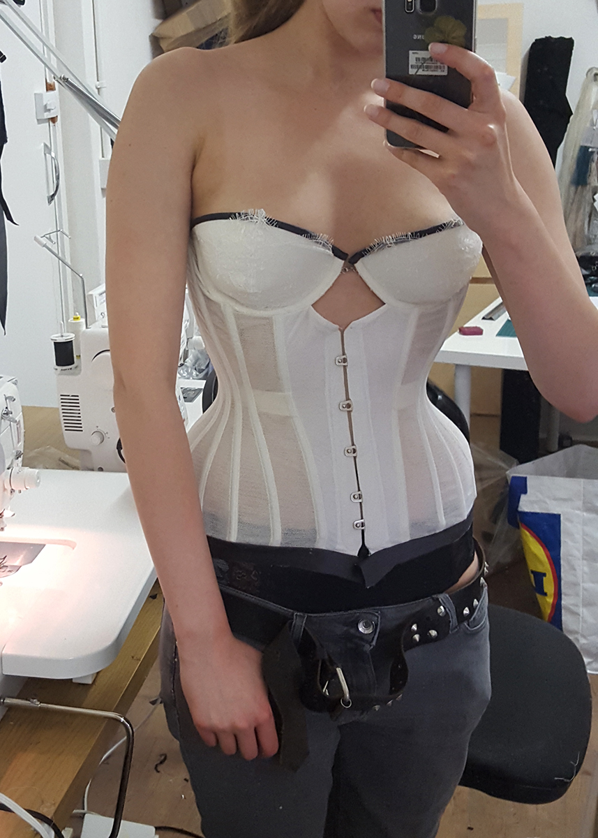 I am notoriously terrible at keeping dress diaries or recording the progress of garments. It was always my one of my least favourite elements of university assignments: when I get into the progress of creating something, I don’t want to continuously stop to record what I’m doing. I want to get absorbed and excited about the process, with no interruptions… Nevertheless, I sometimes manage to get a few phone snaps of the creation process, whether that be for instagram updates or to send to friends. Ink was undoubtably my personal favourite out of all of my creations in 2015; it certainly wasn’t the most popular thing I made but it is most definitely the one I got the most satisfaction from. It’s a dramatic step forward for me in workmanship and in design. So without further ado, here are some of my limited process photos; click the thumbnail to go through to the full colour image.